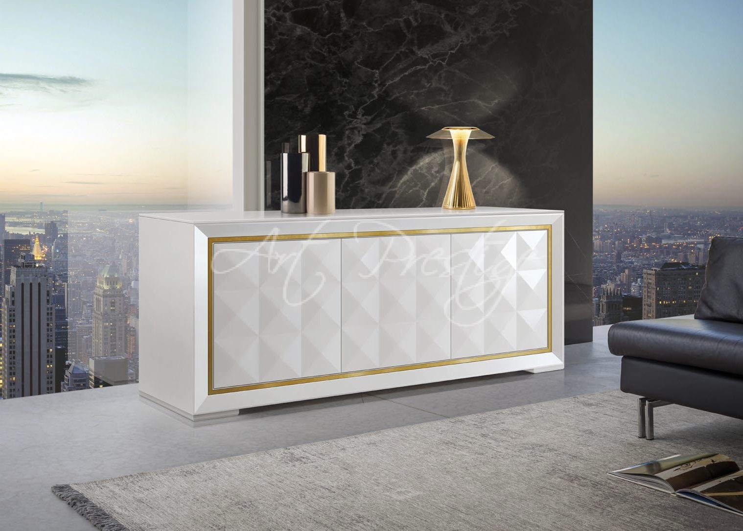 Art.3161 Three-door diamond sideboard with golden metal profiles