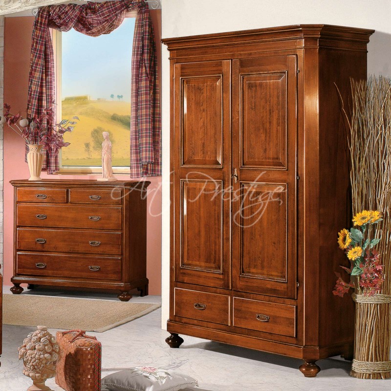 Classic wardrobe with two doors with bosses diamonds and two drawers