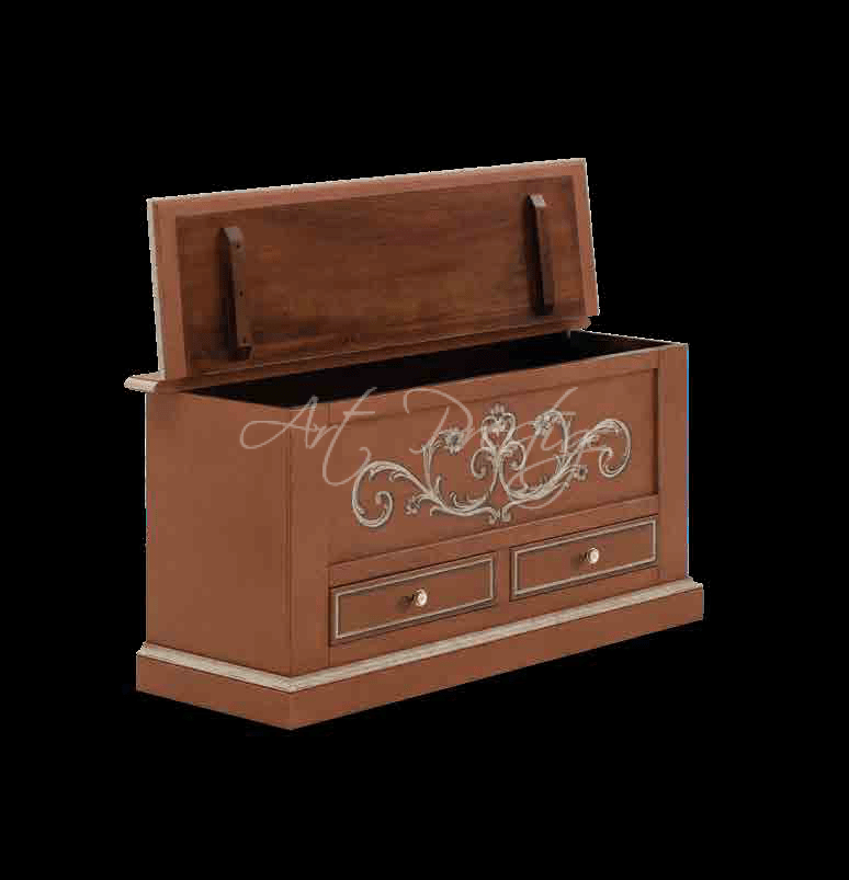 Shabby Chic modern chest with opening top with two underlying drawers, solid beech structure. Decoration finish and color of your choice!