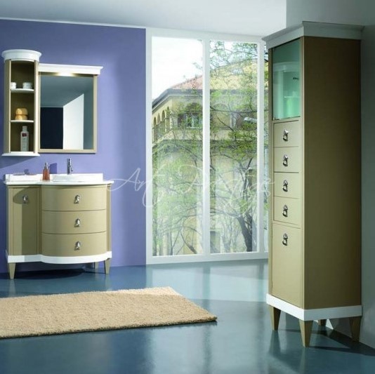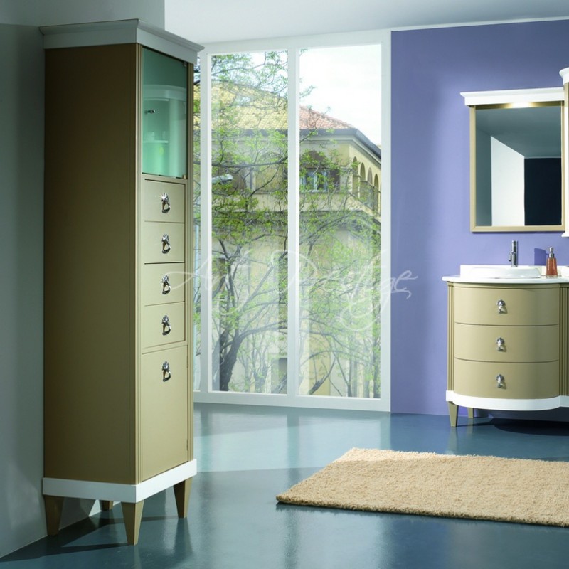 High chest of drawers with upper showcase underneath there are four drawers and a handy drop-down basket