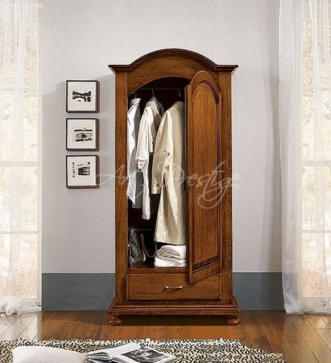 Armadio classico con un’anta bugnata e sagomata, un comodo cassetto sottostante, piedini anteriori torniti, mentre i posteriori a mensola.
