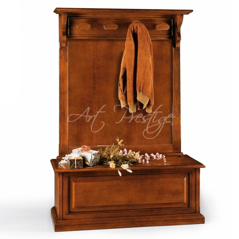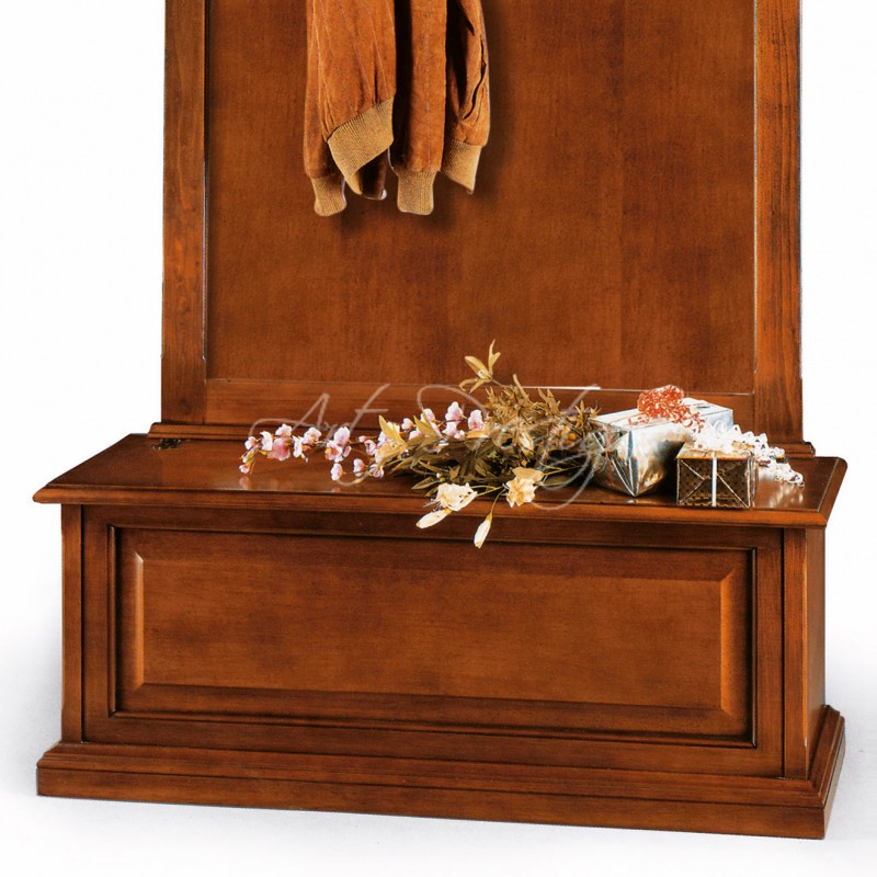 Attaccapanni classico con pannello a muro, completo di una comoda cassapanca classica con apertura a ribalta. Legno: Listellare di faggio massello. Finitura a scelta!