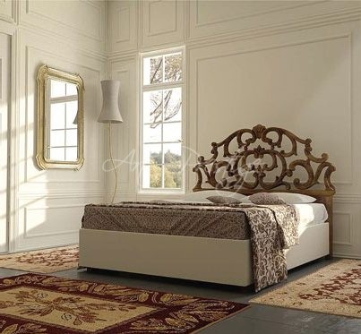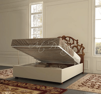 Letto Matrimoniale Barocco con testata intagliata e contenitore interno
