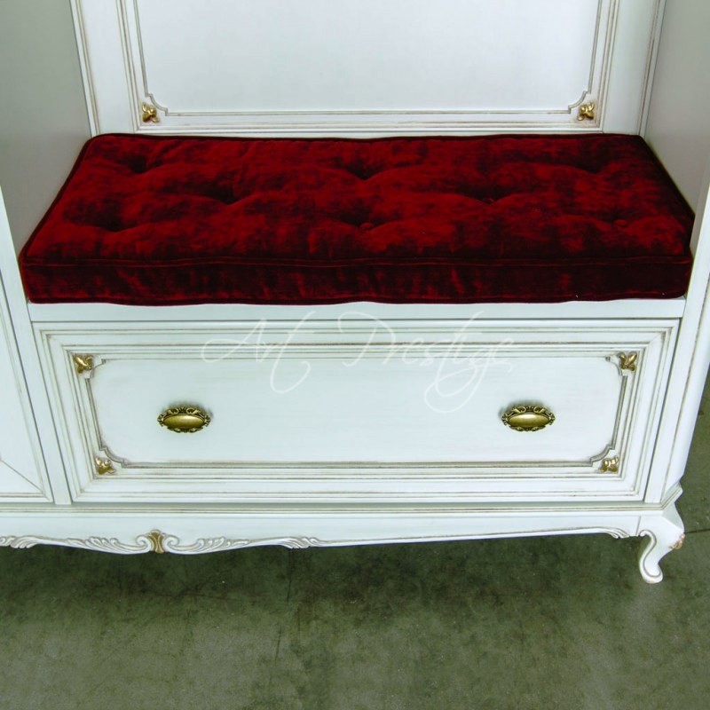 Spalla sagomata con fascia intagliata, gambe ‘700,finitura bianco con particolari oro.
